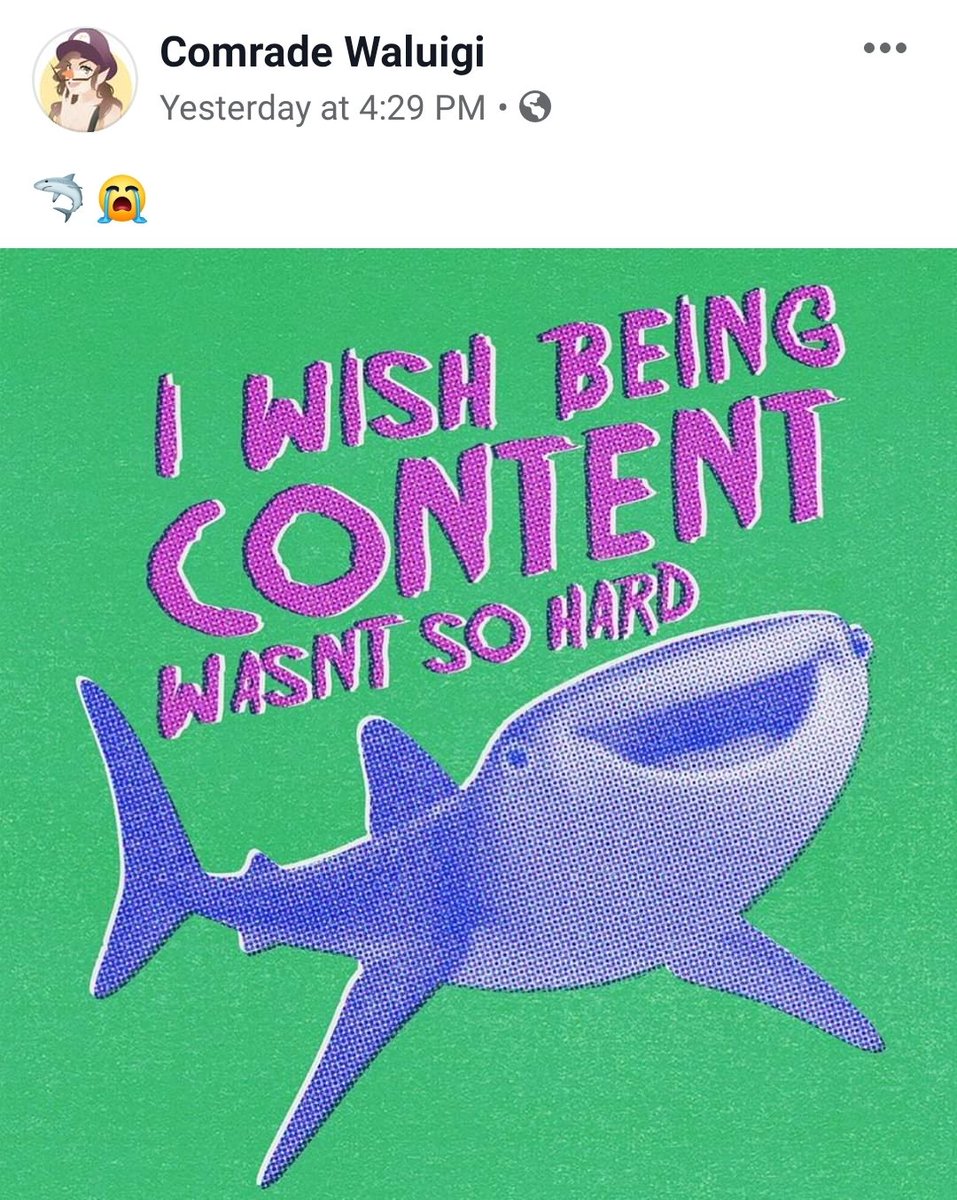 "lack causes desire and contentment is the death of lack. without desire there is no excess and without excess we have no way to circumvent ourselves as a lacking subject. to ask for the end of sisyphean struggle is to ask for the end of a desiring subject at all" -koopa troopapic.twitter.com/6TuNXwaE4N