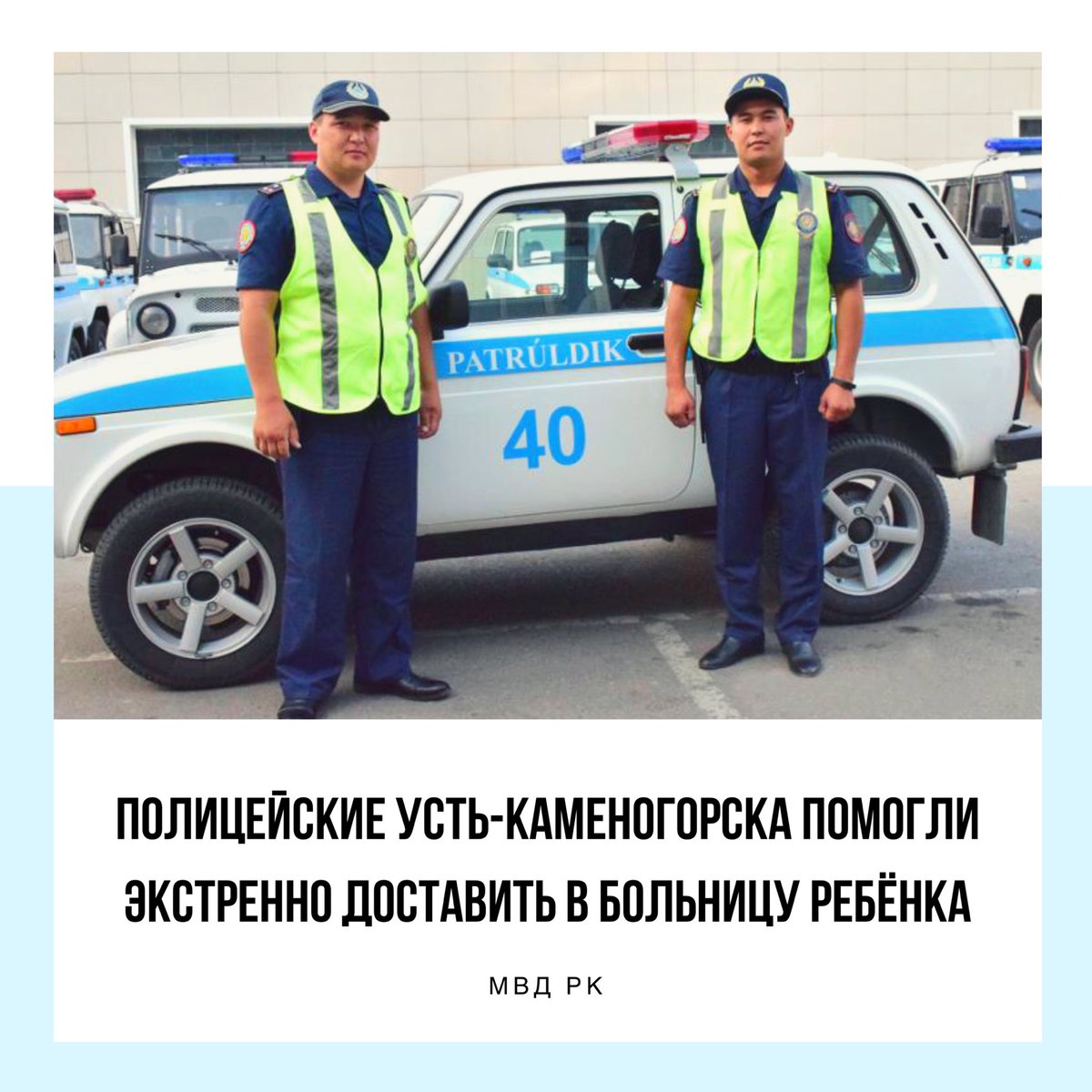 В департамент полиции ВКО обратились жители Усть-Каменогорска с благодарностью в адрес сотрудников управления полиции старшего лейтенанта полиции Медета Еренбакова и лейтенанта полиции Саята Бердикпаева.pic.twitter.com/XylTReOQX4