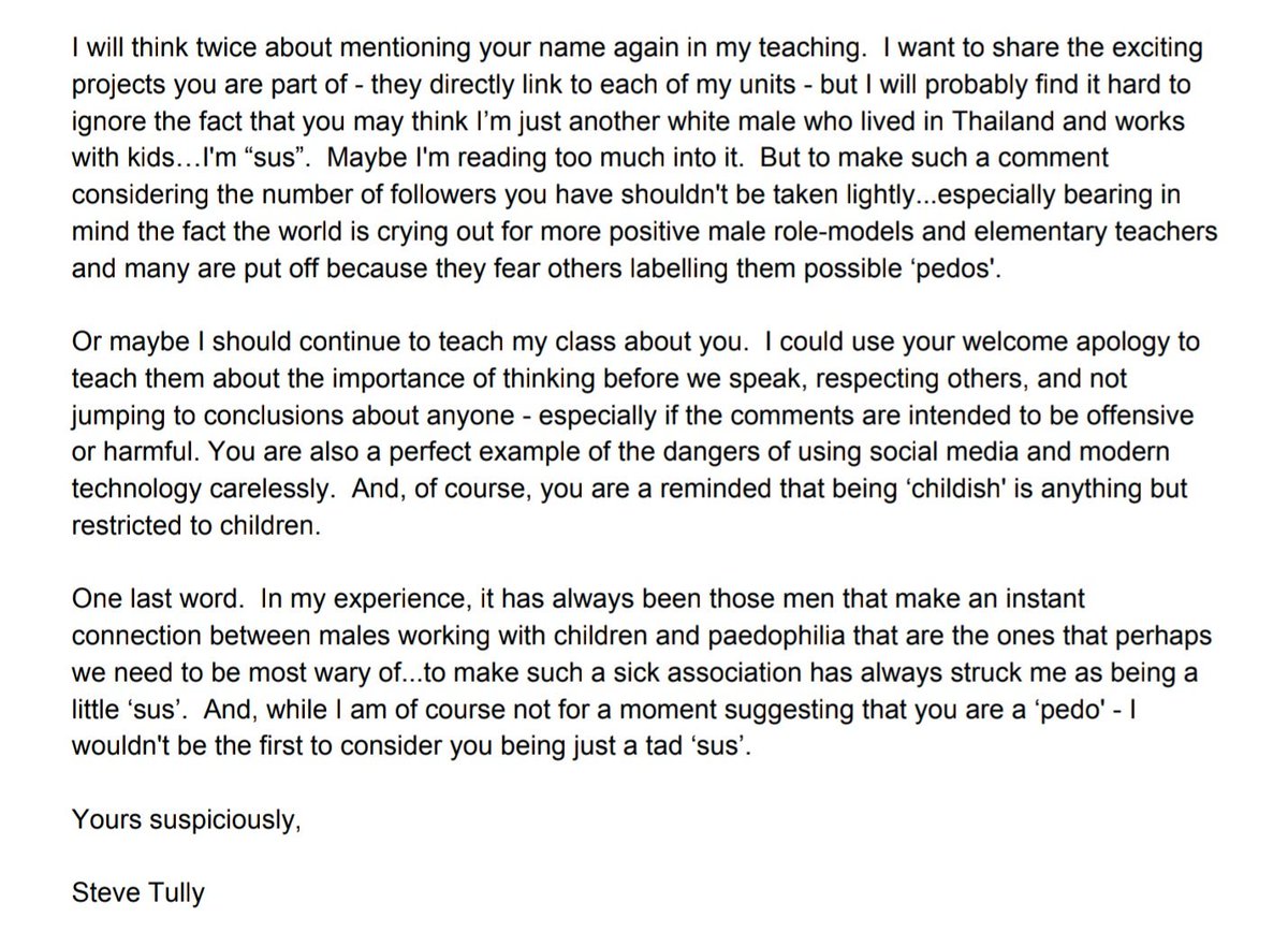 A letter penned by someone who possibly ticks some of the 'pedo' and 'sus' boxes...in your eyes anyway. But there are lessons to be learned here.pic.twitter.com/VGyyW1RTKh