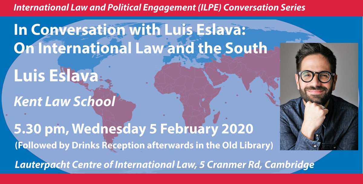 Don't forget tomorrow's evening event at the Centre: International Law and Political Engagement (ILPE) series: In Conversation with Luis Eslava Kent Law School - All welcome to attend. Further info: http://bit.ly/LuisEslava