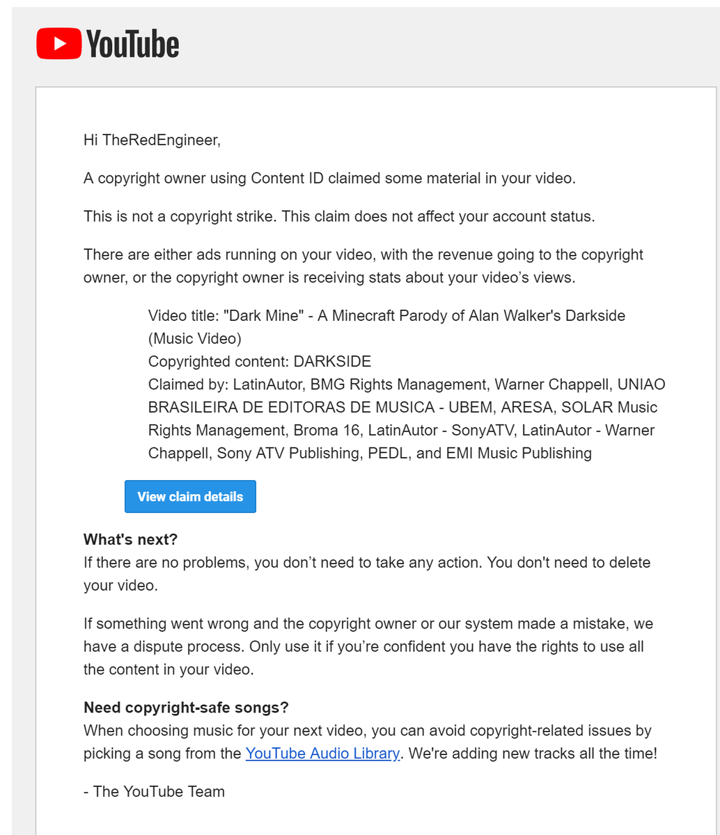 They are claiming a parody where I used minecraft noteblocks and vocals from a singer that I paid.pic.twitter.com/OccYl8AUJj