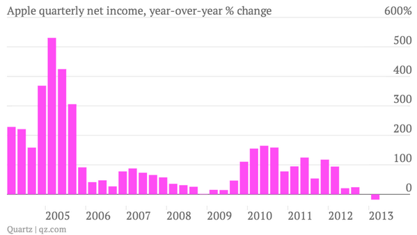 @qz: This is Apple's quarterly net income, year-over-year % change, from March 2004 to present http://qz.com/77501 pic.twitter.com/vH2fytstvn