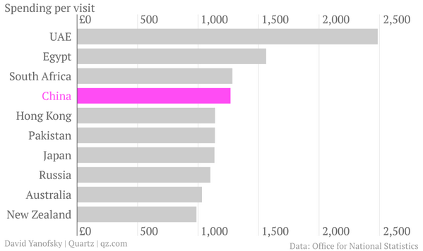 The row in the UK over Chinese tourism is a fight for the travelers’ wallets. http://qz.com/85419 pic.twitter.com/pQUTOR7Wq9