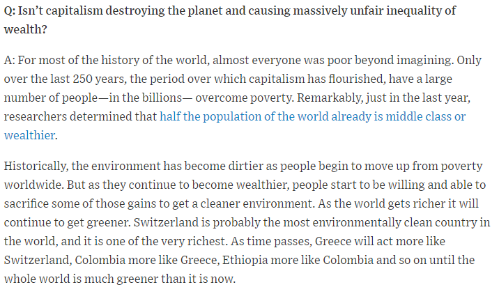 "Isn’t capitalism destroying the planet and causing massively unfair inequality of wealth?" Via