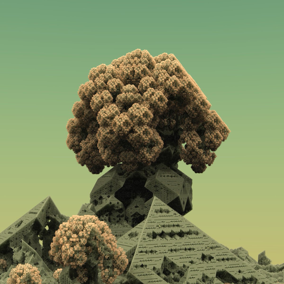 Then you fill the centers of every cube by applying a totalistic rule on 3 states (empty, green, tan) on the 8 values on the corners (3/n)