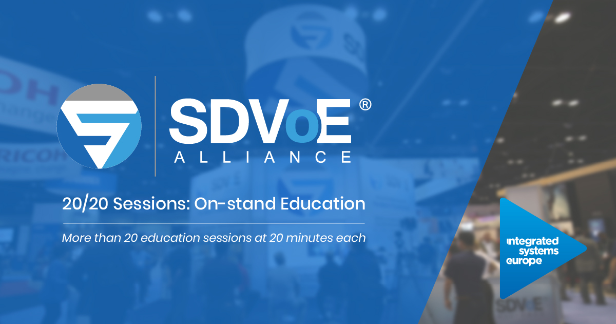 #ISE2020 is officially one week away — make sure you register for the@SDVoE 20/20 sessions (stand 1-F40) if you're planning to attend the show. There are 20+ sessions to choose from, and they're being offered in a variety of languages! Learn more here: https://rave.pub/2RAYy9b pic.twitter.com/oLaOs3fN1z