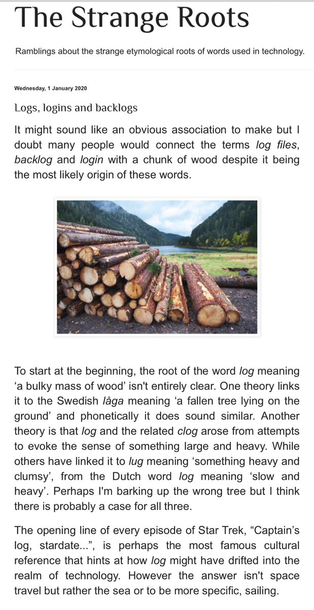 #etymology:#TIL the fun connection between logs, logins and backlogs
