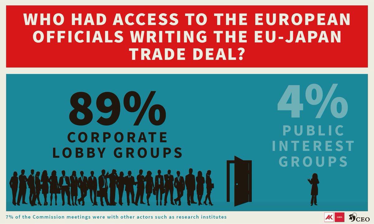 #EUTrade negotiators on#EUJapan trade deal#JEFTA. 89% of those with big business#lobbyists. Quelle surprise: the result is a deal for big biz that sidelines the interests of people & environment. https://corporateeurope.org/international-trade/2018/05/jefta-exclusive-trade-between-eu-negotiators-and-big-business …pic.twitter.com/5MXOM53PDu