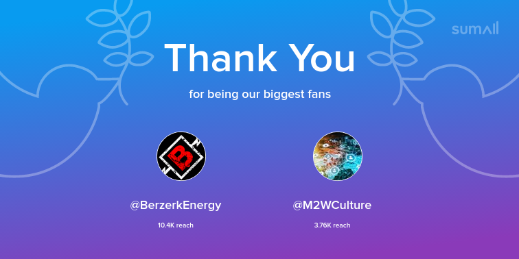 Our biggest fans this week: BerzerkEnergy, M2WCulture. Thank you! via https://sumall.com/thankyou?utm_source=twitter&utm_medium=publishing&utm_campaign=thank_you_tweet&utm_content=text_and_media&utm_term=66e8d8a84ed90c82314f165b …pic.twitter.com/l4ufsdzpNf