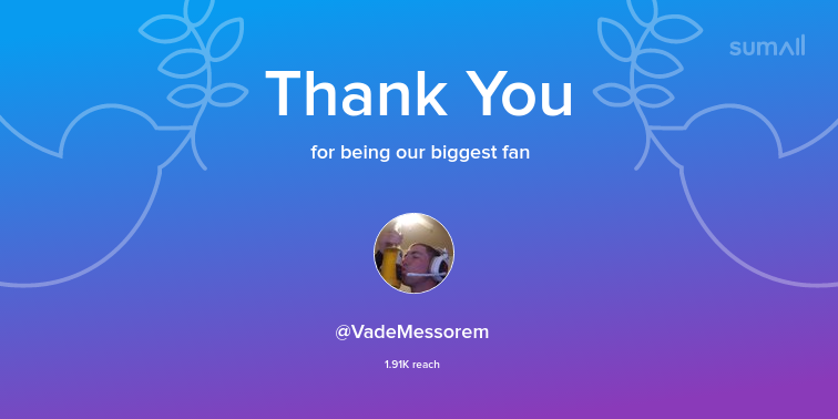 Our biggest fans this week: VadeMessorem. Thank you! via https://sumall.com/thankyou?utm_source=twitter&utm_medium=publishing&utm_campaign=thank_you_tweet&utm_content=text_and_media&utm_term=66e8d8a84ed90c82314f165b …pic.twitter.com/YKfRtaB2ra