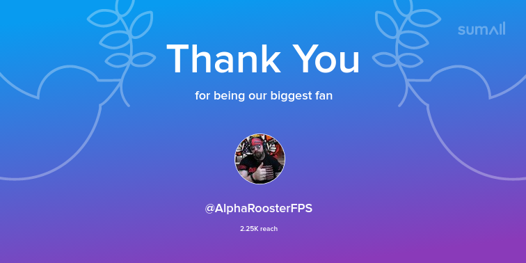 Our biggest fans this week: AlphaRoosterFPS. Thank you! via https://sumall.com/thankyou?utm_source=twitter&utm_medium=publishing&utm_campaign=thank_you_tweet&utm_content=text_and_media&utm_term=66e8d8a84ed90c82314f165b …pic.twitter.com/kPXulHB3bj