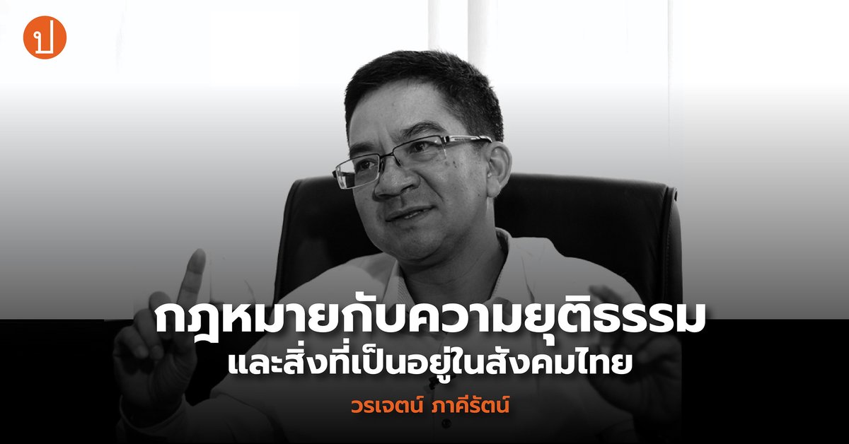 กฎหมายกับความยุติธรรมสัมพันธ์กันอย่างไร? คือความยุติธรรมหรือไม่จำเป็นต้องยุติธรรมเสมอไป? ความยุติธรรมคือ? เคำถามชั่วนิรันดร์ของมนุษยชาติ ซึ่ง 'วรเจตน์ ภาคีรัตน์' ชวนเราค้นหาคำตอบที่อาจเป็นไปได้ จากปาฐกถานำ หัวข้อ ‘กฎหมายกับความยุติธรรม’ (ขนาดยาว) https://prachatai.com/journal/2020/02/86193 …pic.twitter.com/SpY5rCMOAY