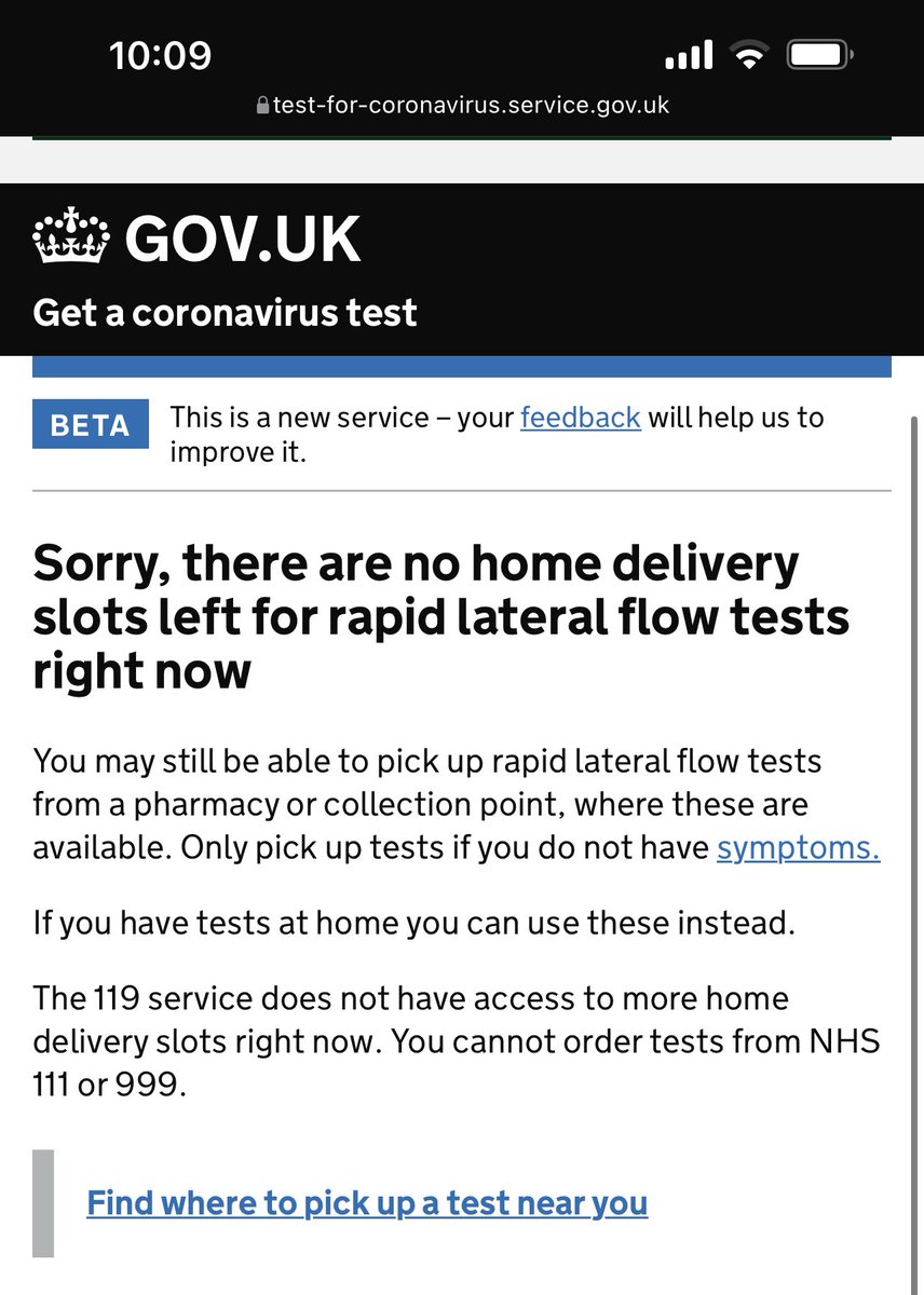 Yesterday Boris Johnson announced the end of free tests for all from April - and now there are no Lateral Flow kits available for home delivery. A drop in supply, or people stocking up?pic.twitter.com/Y1NioEnbWY