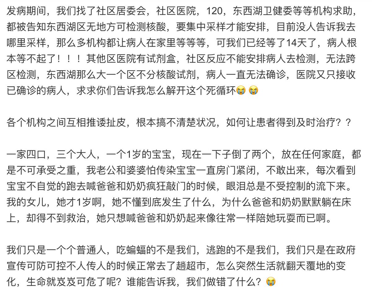 #coronavirus group on Weibo. The father and grandmother in this family of four in#Wuhan have fallen ill. There's no testing kit in their area and hospitals only take in confirmed patients. "How do you break this dead cycle?"pic.twitter.com/Z6MS330Vmf