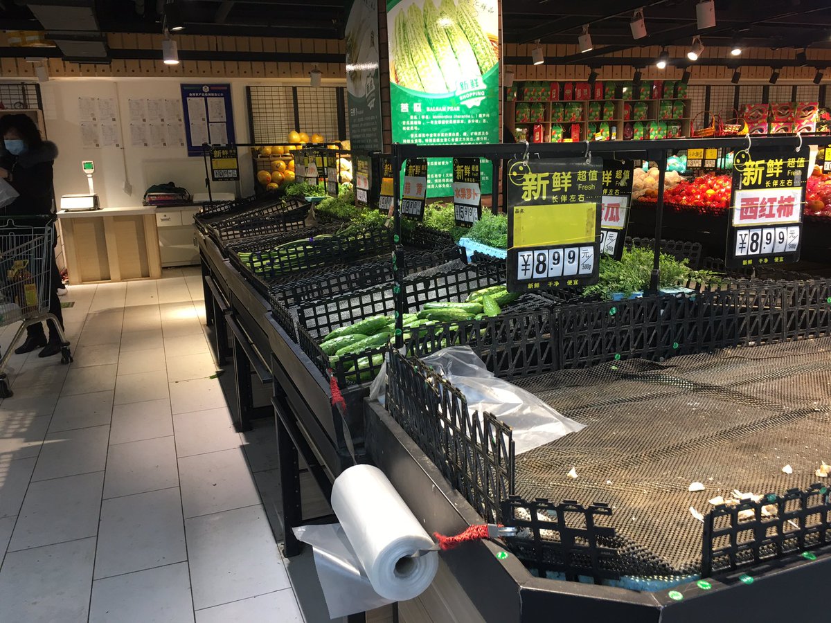 I’m in Beijing and went to several grocery stores today. At this local Chinese store everything was well stocked except for veggies. At the foreign shops like April Gourmet, Carrefour, & Jennie Lou’s, they have everything and people were shopping like normal.pic.twitter.com/tMLIs6GgiX