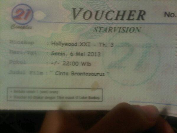 Yg jomblo gatau nontn sama siapa \m/“@radityadika: Besok film Cinta Brontosaurus tayang di bioskop2! Khusus yg nonton besok, twitpic tiketn"