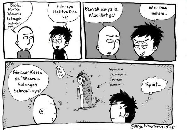 Hehehe :)) RT @radityadika Kampretttt.. :)) RT @KomikAnus: NONTON MANUSIA SETENGAH SALMON-NYA @radityadika YUK:pic.twitter.com/BLa9UzxONY