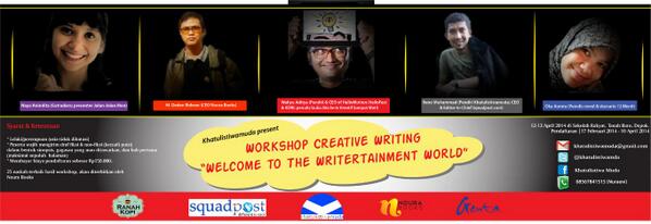 @Bilqisghaida_ ikut lokakarya dr@khatulistiwamda yu. 25 psrta terbaik akan diterbitkan karyanya o/ NouraBookspic.twitter.com/HsT0aBf0LL