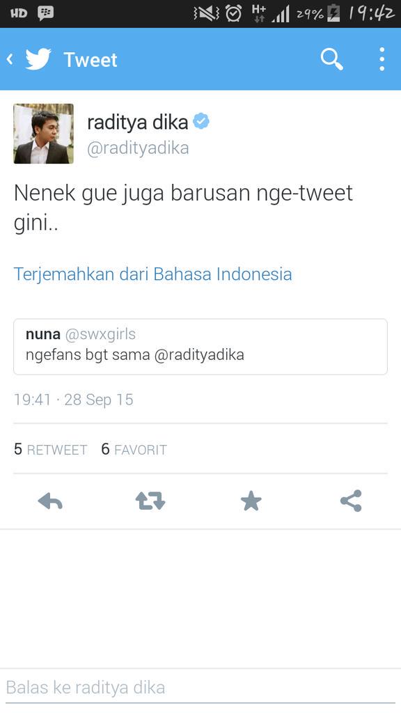@radityadika keren jg ya neneknya kak dika. Udh tua, tp mainnya twitter :D#Gokil ;)Thanks. Twitter will use this to make your timeline better. UndoUndo