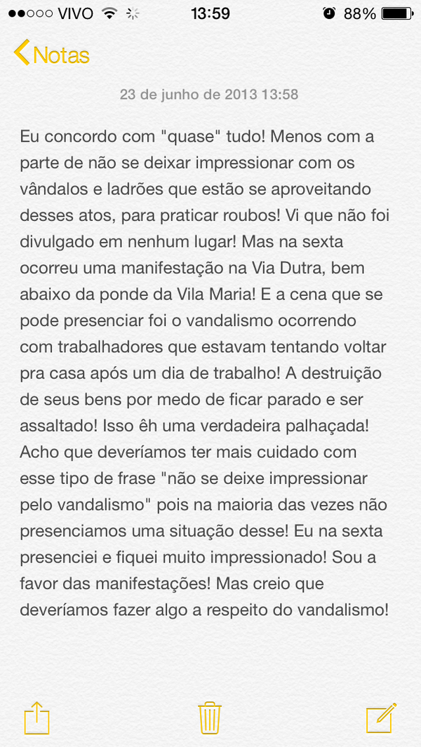 @rafinhabastos Acabei de ver o seu vídeo e posso afirmar que você deu uma freada brusca na sua empolgação com as manifestações!Thanks. Twitter will use this to make your timeline better. UndoUndo