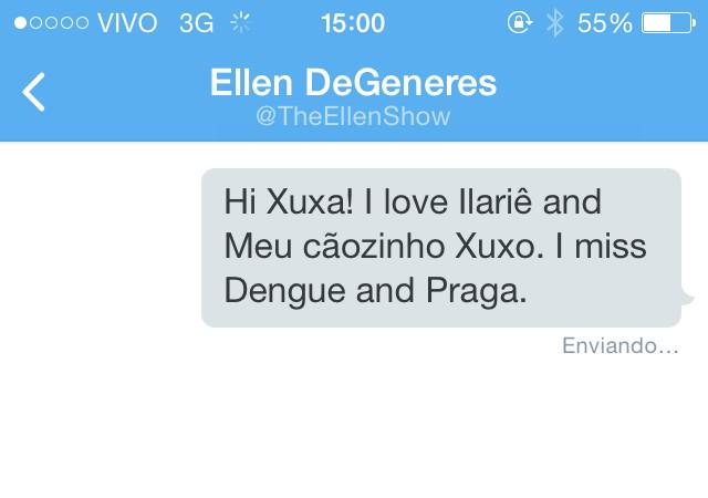 @rafinhabastos A Ellen já te segue, agora só falta a XuxaThanks. Twitter will use this to make your timeline better. UndoUndo