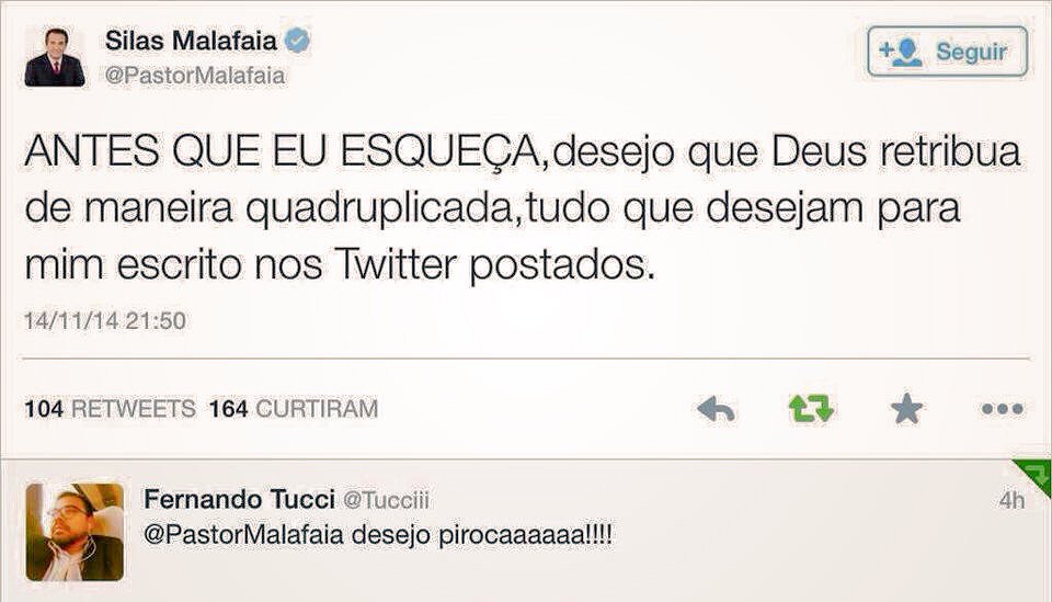 @rafinhabastos pq o@Tucciii levou um block seu?? Até o tio malafaia tem mais senso de humor! -