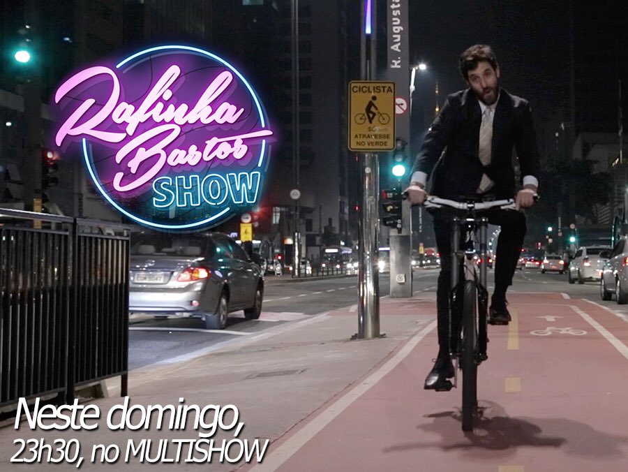 Chegando de bicicreta pro talk show.