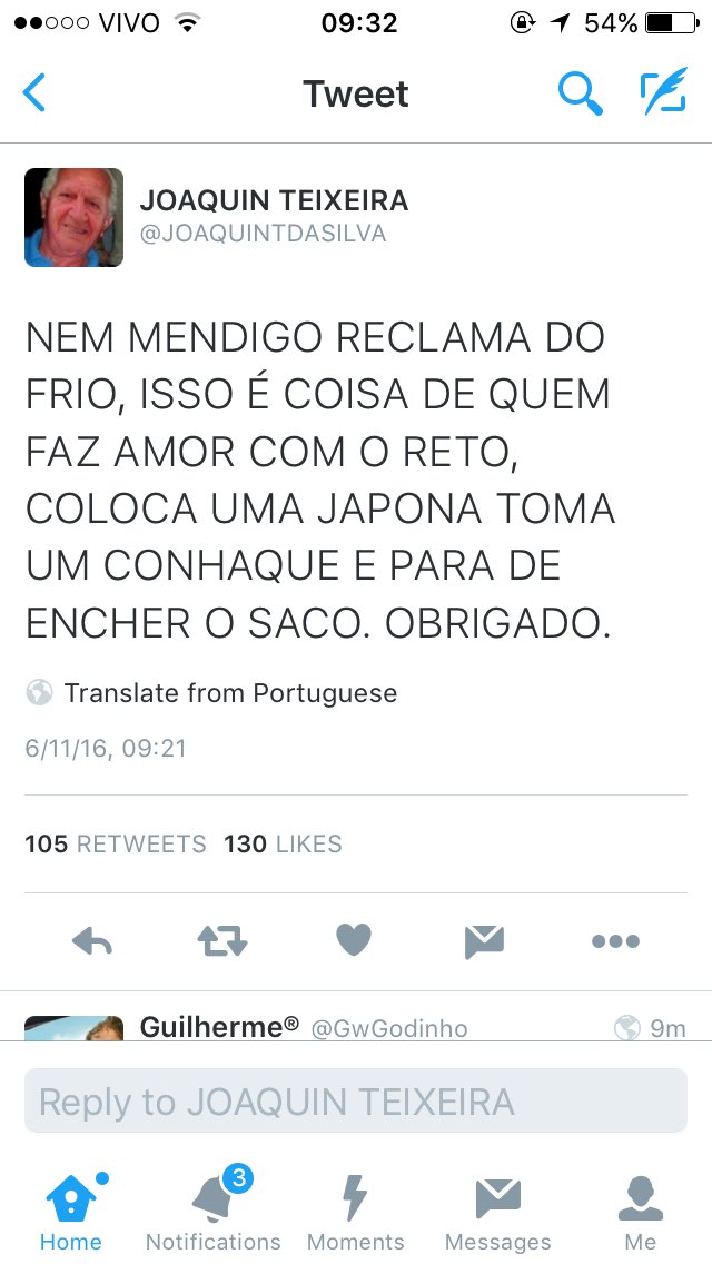 vem dar uma voltinha em sc q vai ver o que é frio. Tá reclamando a toa.