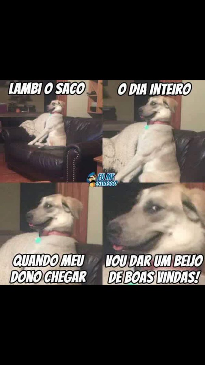 Típico comportamento canino: Passar o dia lambendo o saco, quando o dono chega lambe a cara dele!