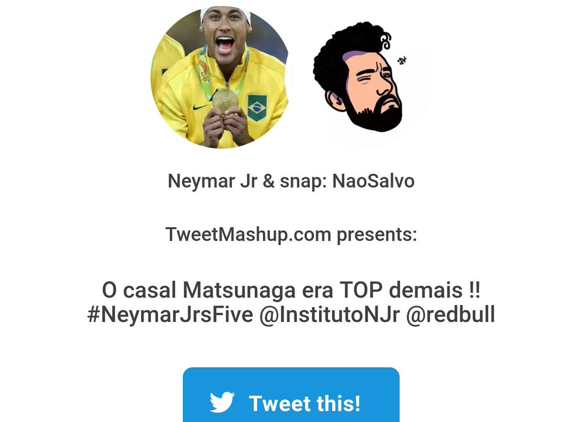 Tava usando esse site que mistura seus tweets com o de outra pessoa e cheguei a conclusão que eu e o neymar num churrasco ia dar merda...pic.twitter.com/7iPnkpjzI7