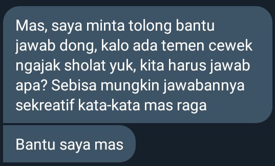 Ada yang dm kaya begini, kalau misal kamu kreatif boleh bantu jawab. Yuk kita bantu mas-mas ini