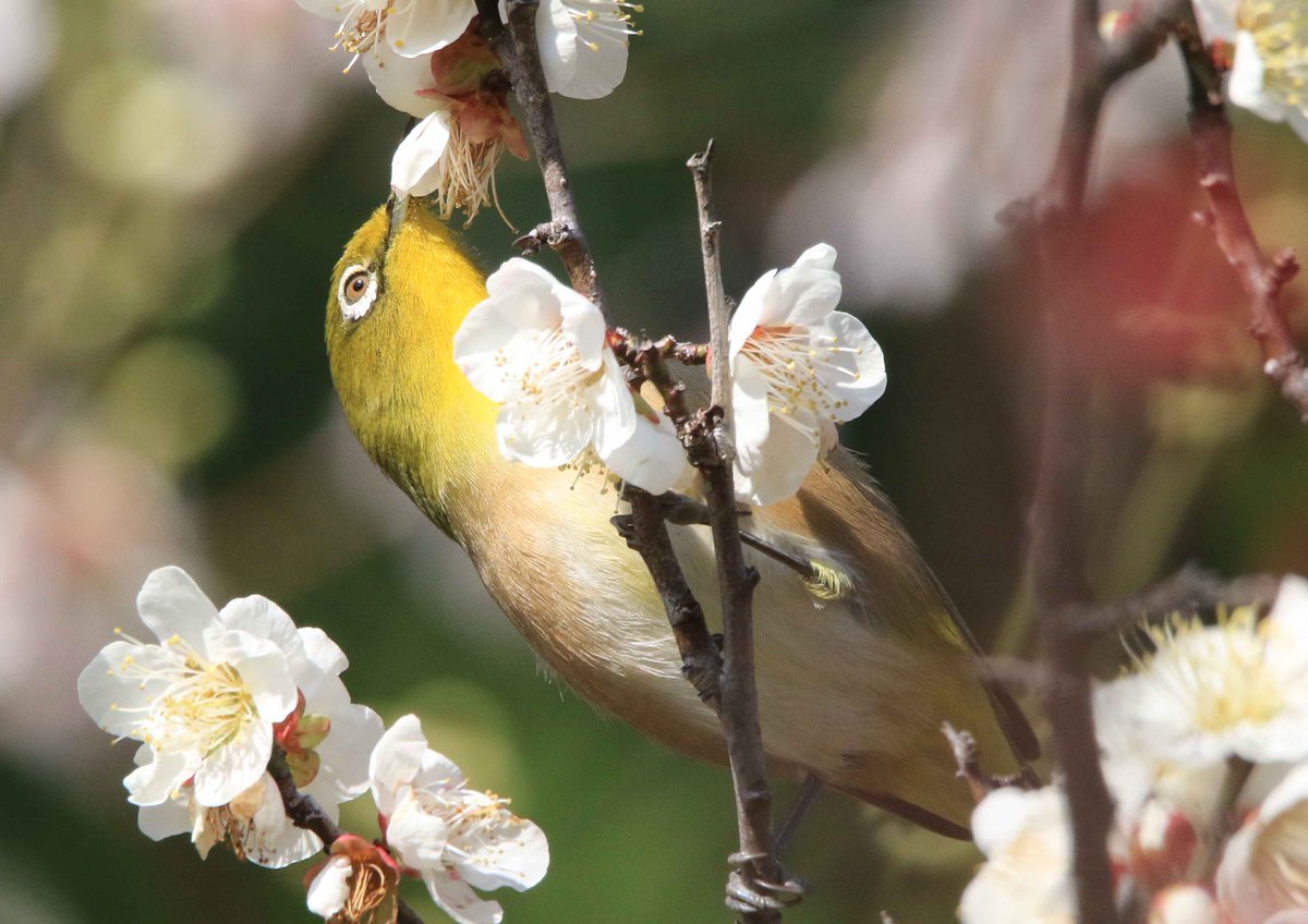 広島市、縮景園にて。満開の梅の枝を飛び交うメジロたちが、一足早い春を楽しんでいます(◉Θ◉)pic.twitter.com/yxyK5kQPUx