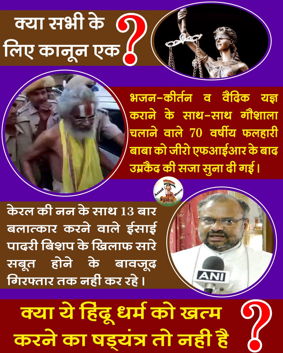 Sir, Bishop Franco Mulakkal के लिए न कोई मीडिया ट्रायल न ही कोर्ट की सख्ती आखिर आरोपी बिशप पर मीडिया चुप क्यों ? और आरोपी बिशप पर कोर्ट की नरमी क्यों? क्या केरल हाइकोर्ट भी हिन्दू विरोधी है? Why #DualityInLegalSystem ??pic.twitter.com/N0a629O2Z9