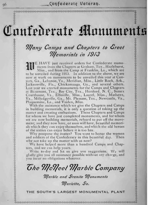 Erected 59 years after the end of the Civil War during the height of the "Lost Cause" narrative in the former Confederate States.