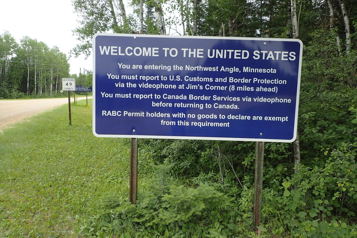 When you enter the US Northwest Angle (Minnesota) from Canada, a sign says you must report to the U.S. CBP "via the videophone at Jim's Corner." https://www.google.com/maps/place/Signal+border+USA./@49.2882475,-95.1553264,981m/data=!3m1!1e3!4m5!3m4!1s0x52bfab1f4b33c3a9:0x53fdfdec75a5e494!8m2!3d49.2882309!4d-95.1531565 … http://ericandnoelle.blogspot.com/2018/07/a-day-in-minnesotas-northwest-angle.html …pic.twitter.com/J57jCWNtBl