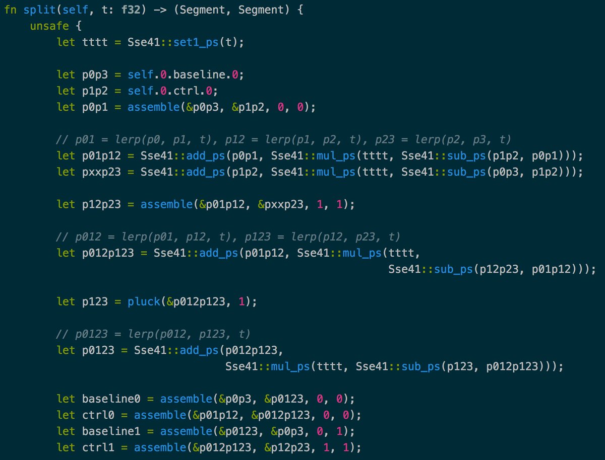 De Casteljau subdivision of cubic Bézier curves in 17 instructions using Rust’s SIMD. Not bad!pic.twitter.com/DuXvelPcIt