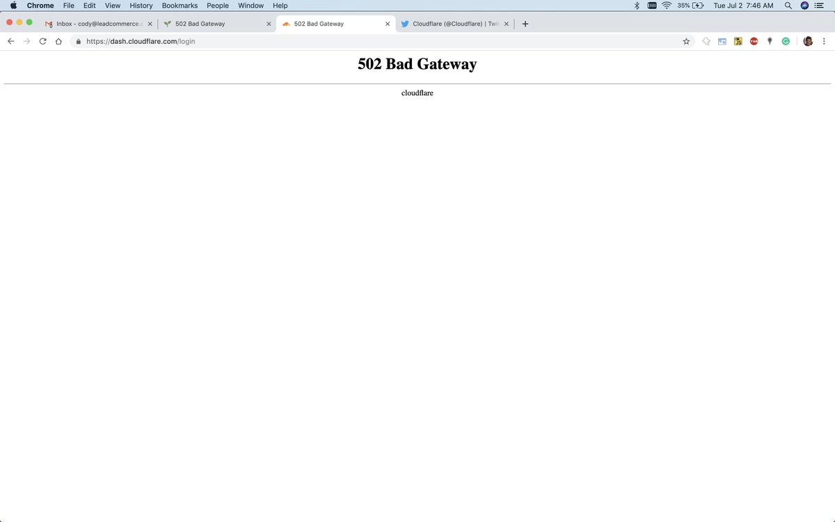 @Cloudflare Are you all down? I am getting a 502 error when hitting my sites? see imagepic.twitter.com/2lknf6l3v0