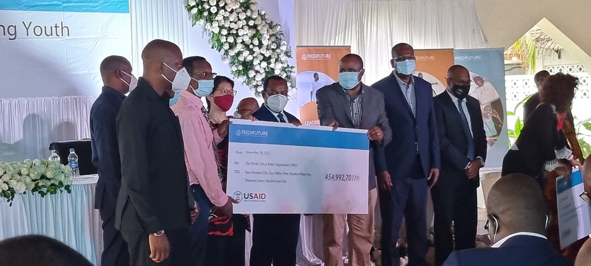 @pamoja_youth to receive a dummy cheque worth TZS 289,333,928 to implement the Feed the Future Tanzania Advancing Youth project funded by@USAID. Thank you Hon.@othmasoud for the handover.@usembassytz@USAIDTanzania@ikuluzanzibarhttps://twitter.com/ahmedkherlid/status/1465591018821193728 …