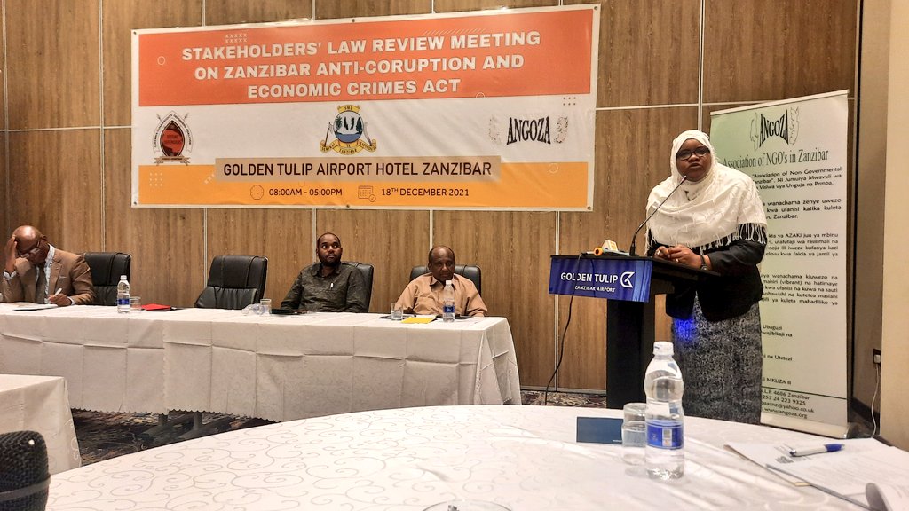 Attending stakeholders' law review meeting on Zanzibar anti-corruption and economic crimes act organized by
