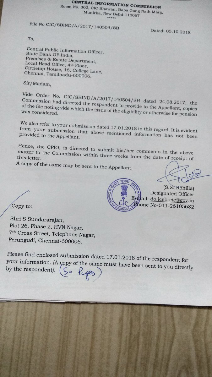 @TheOfficialSBI is not furnishing the information related to Pension under RTI Section 7(1) of Life and Liberty, despite CIC decision dated 24.08.2017. Notice issued to SBI is attached for your kindinfopic.twitter.com/5SzSdDw28s