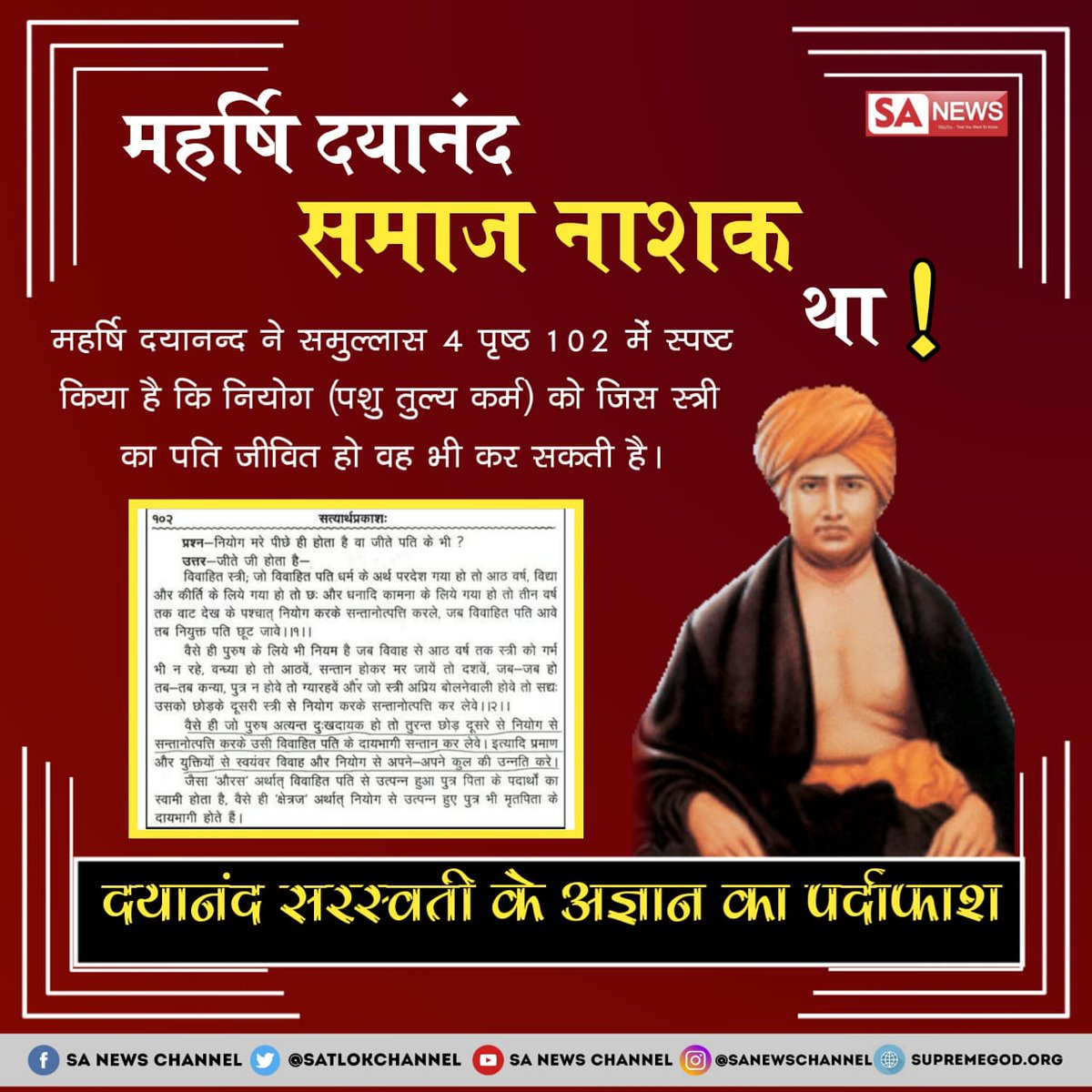 #सचVSझूठ महर्षि दयानंद सरस्वती जी जितने भी ज्ञान फैला रखे हैं सब परमात्मा के विरुद्ध है और वेदाें से बिलकुल अलग है ऐसा करना गलत है जाे दुनिया काे बिगाड़ने वाला है ।pic.twitter.com/8NyQ4NpMCt