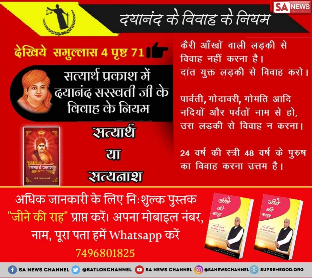 #सचVSझूठ स्वामी दयानंद द्वारा लिखित पुस्तक सत्यार्थ प्रकाश के समुल्लास 4 में नारी जाति के मान-सम्मान और सामाजिक व्यवस्था के विरुद्ध अश्लील अमर्यादित विधान बताए हुए हैं ऐसे प्रधान से कभी भी समाज का सुधार नहीं हो सकता है साधना चैनल पर शाम7:30बजे से@cmohry@CMOfficeUP@CMO_Odishapic.twitter.com/u8Katsvoap