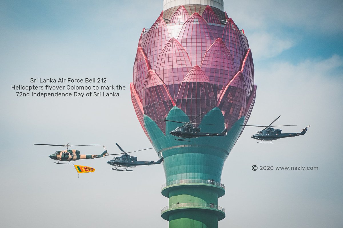 Sri Lanka Air Force Bell 212 Helicopters flyover Colombo to mark the 72nd Independence Day of Sri Lanka. PS: I have been envisioning this shot in my dreams and I finally managed to nail it today. Happy Independence Day, Sri Lanka!!!