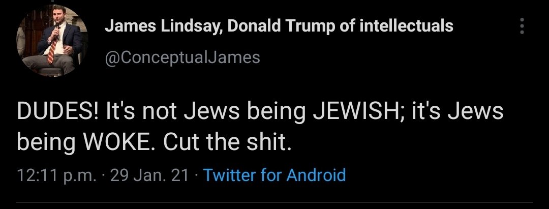 Oh wow, I just realized who the historical parallel to "the woke" would have been that James thinks led to the first Hitler.