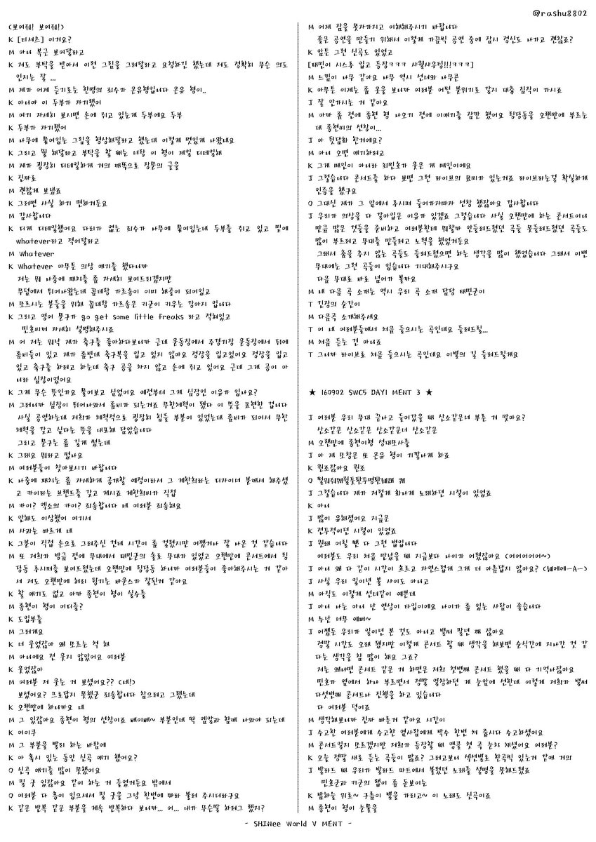 #선녀와나무콘 SHINee World V 160902 DAY1 MENT FULL TEXTpic.twitter.com/sGlh3L1MI2