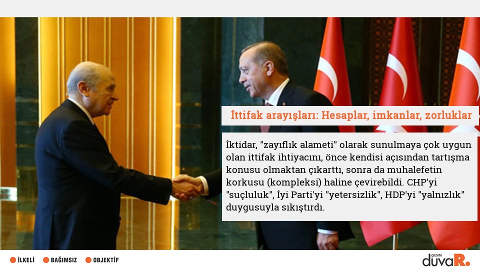 İktidar, CHP’yi “suçluluk”, İyi Parti’yi “yetersizlik”, HDP’yi “yalnızlık” duygusuyla sıkıştırdı. Kendi güçsüzlüğünü ittifakla çözmeye çalışan iktidar karşısında “güç birliğinden utanan” bir muhalefet oluştu.https://twitter.com/gazeteduvar/status/981395943500189696 …