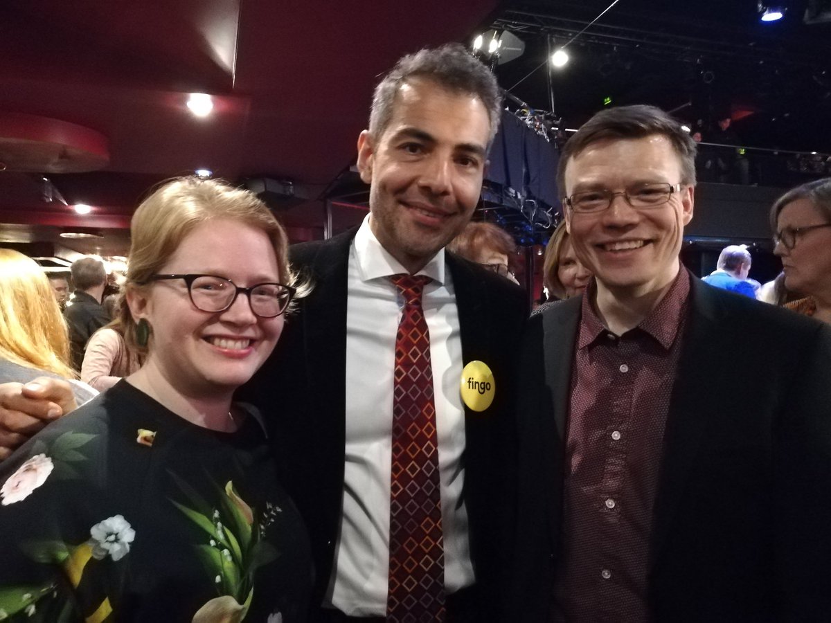 Kävin omieni vaalijuhlan jälkeen onnittelemassa Vihreän puolueen ystäviäni hienosti tehdystä työstä. Tavastialla oli odotetusti rento meininki. Monia ilahdutti dna-testin tulos, joka todisti aukottomasti sukulaissuhteeni