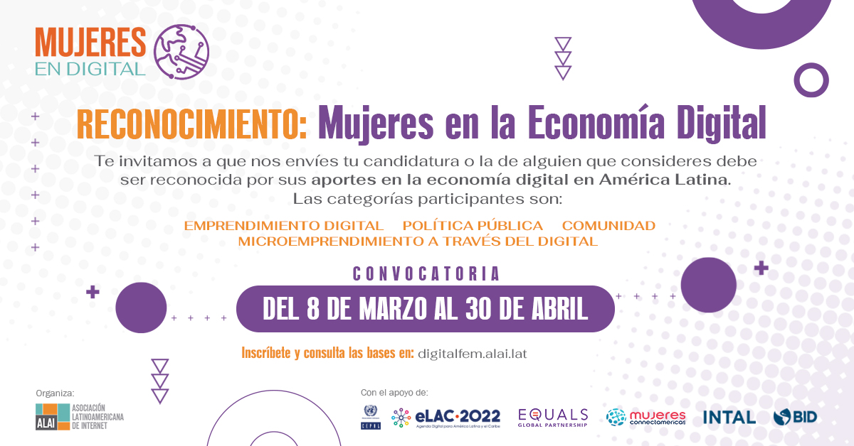 #EconomíaDigital en América Latina desde distintos roles: emprendedoras, microemprendedoras, desde la política pública o la comunidad. Ahora tenemos la oportunidad de reconocerlas. Nominaciones hasta 30/4.@alai_latpic.twitter.com/FpY4m1KZzo