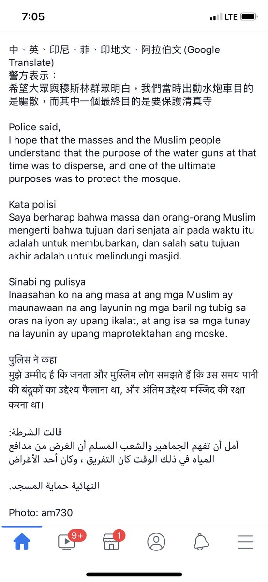 أرسلت شرطة هونغ كونغ سيارة مدفع المياه يوم السبت في ٢٠ أكتوبر إلى تسيم شا تسوي، وأطلق تيار المياه الأزرق عالي الضغط على أكبر مسجد في هونغ كونغ خلال تنفيذ الواجب، حيث أظهرت لقطات فيديو أنه لم يكن هناك متظاهرون باستثناء عدة مدنيين خارج المسجد. #HongKongProtests #MosqueAttackByHKPFpic.twitter.com/5AA06udXkd