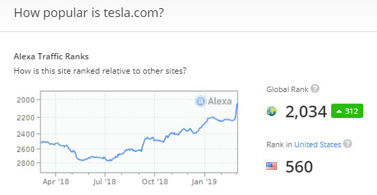Indeed, Alexa's not showing much indication of that "demand cliff" the bears keep babbling about either. Source: https://www.alexa.com/siteinfo/tesla.com …pic.twitter.com/w5tPKFAF9z